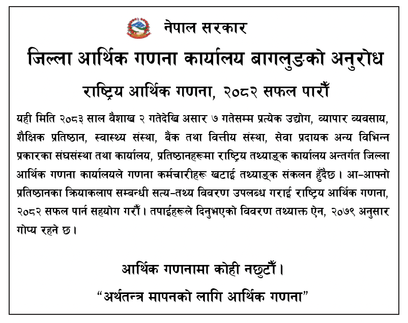 बागलुङ - कुल दुई लाख ४९ हजार २११ जनसंख्या रहेको बागलुङमा ५८...